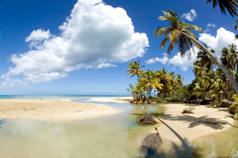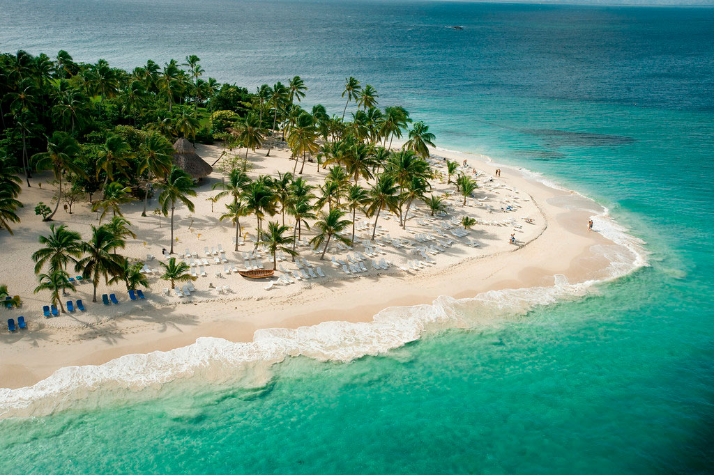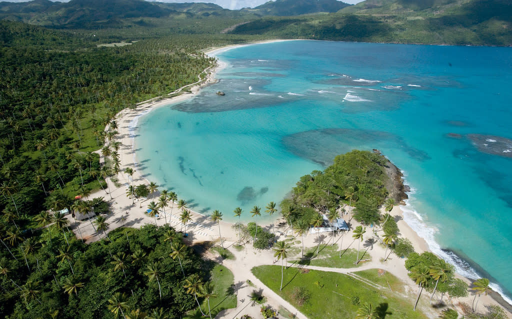 El pequeño islete está sólo cinco kilómetros de la Bahía de Samaná, y cuenta con brillante arena blanca y playas bordeadas de palmeras.