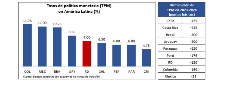 El Banco Central de la República Dominicana (BCRD), en su reunión de política monetaria de abril de 2024, decidió mantener su tasa de interés de política monetaria (TPM) en 7.00% anual.