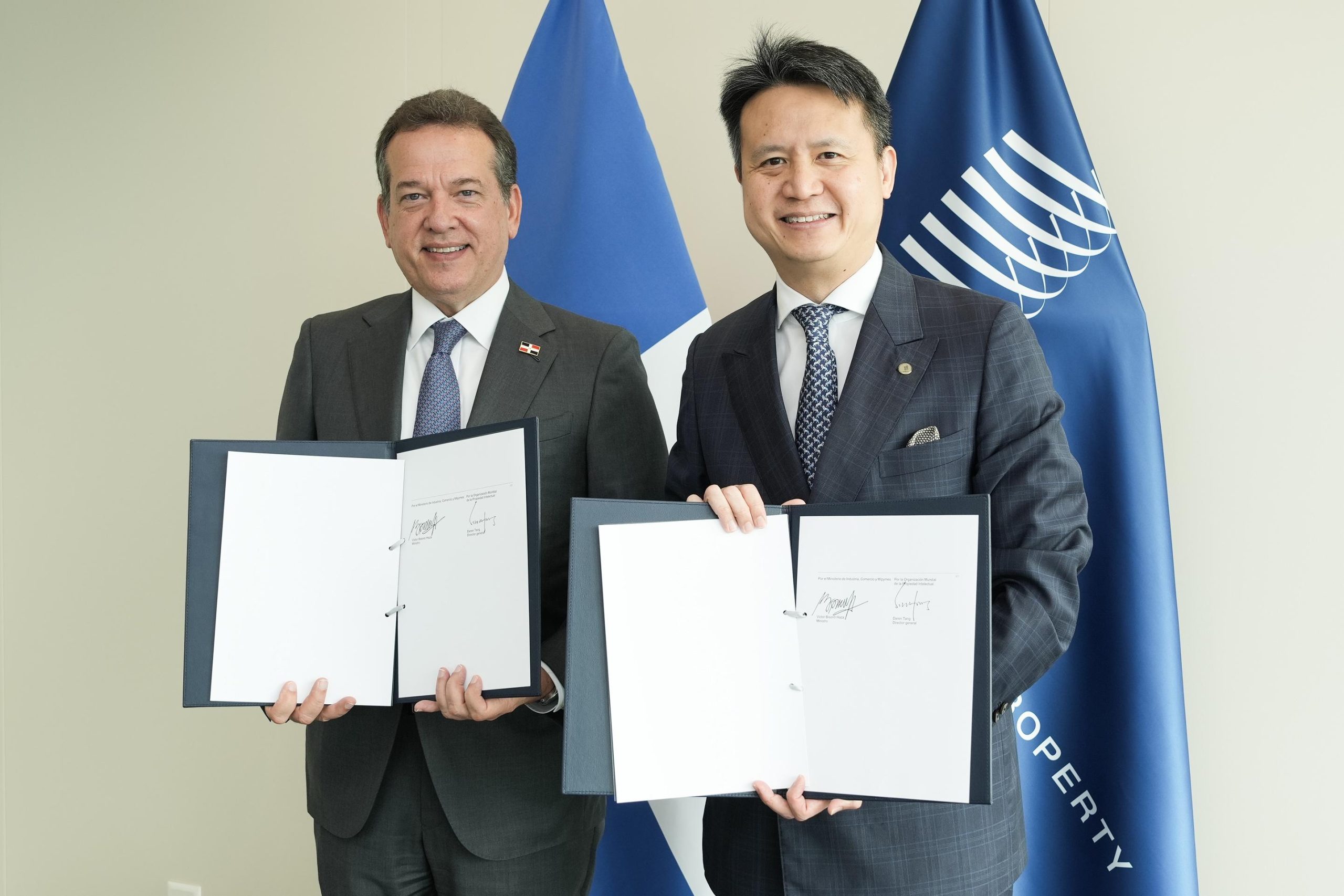 El ministro de Industria, Comercio y MiPymes de la República Dominicana, Víctor Ito Bisonó, sostuvo un encuentro bilateral con el director general de la Organización Mundial de la Propiedad Intelectual(OMPI), Daren Tang, donde se formalizaron cuatro documentos esenciales para la promoción, protección y observancia de los activos de propiedad intelectual en la República Dominicana.