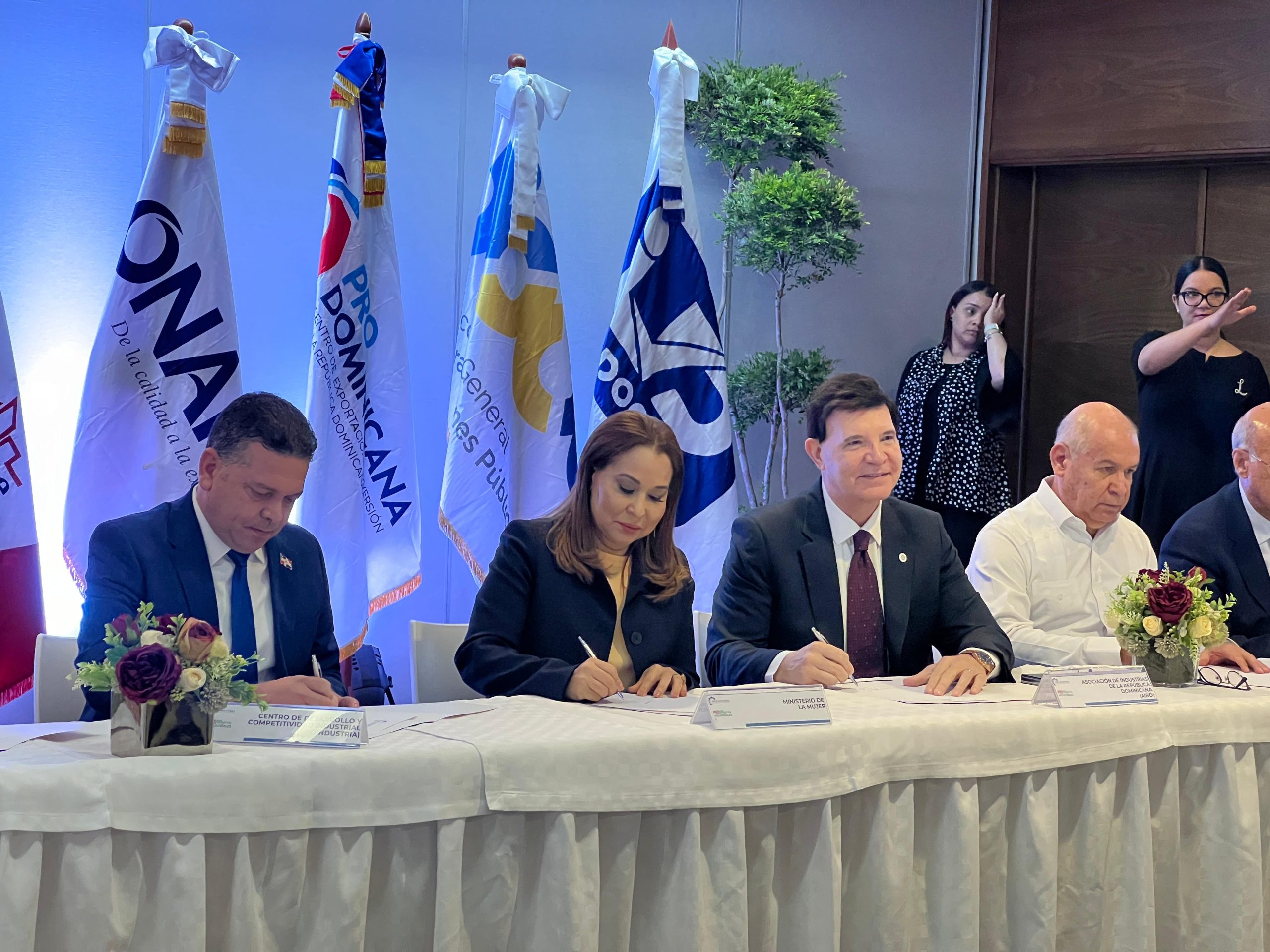 El convenio fue firmado por ProIndustria, el Ministerio de la Mujer, el Centro de Exportación e Inversión de la República Dominicana (ProDominicana), la Asociación Nacional de Mujeres Empresarias, Ejecutivas y Profesionales (Anmepro), la Federación de Mujeres Empresarias (FEM), la Asociación Dominicana de Mujeres Empresarias (ADME) y la Asociación Dominicana de Industrias Textiles (Aditex).