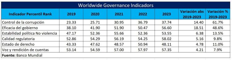 En cuanto al control de la corrupción, dijo que aunque el país aún enfrenta desafíos, el avance del percentil 28.57 en 2003 al 37.74 en 2023 subraya un esfuerzo continuo para promover la transparencia y combatir la corrupción en todos los niveles de gobierno. “La lucha contra la corrupción es un compromiso fundamental de esta administración y estos datos reflejan los primeros pasos en una transformación que requiere esfuerzo y constancia”, aseguró Figueroa.
