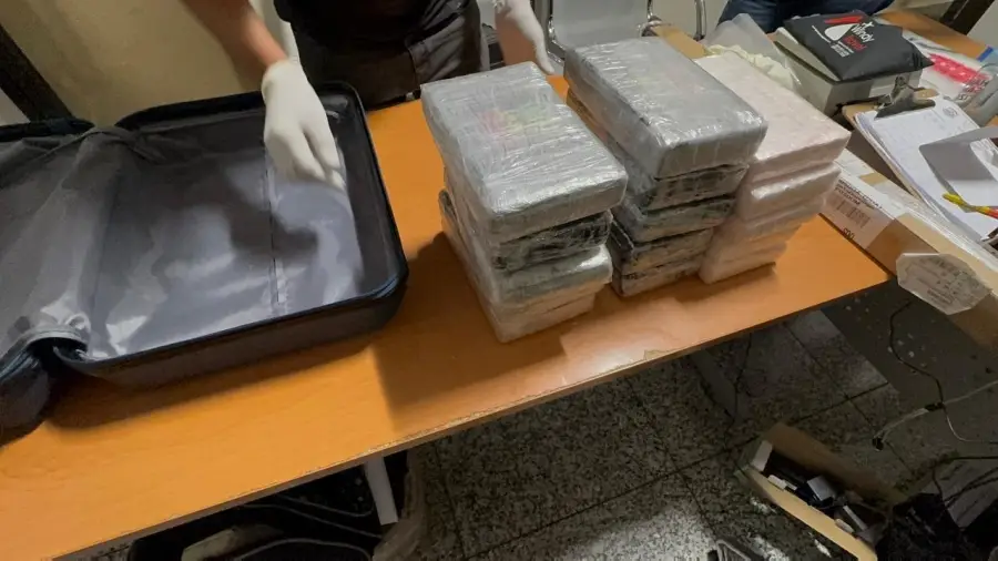 Cuando procedieron a verificar más exhaustivamente, abrieron todo el equipaje y encontraron tres paquetes de 3.63 kilogramos de cocaína, envueltos en fundas de plástico y camufladas en prendas de vestir.