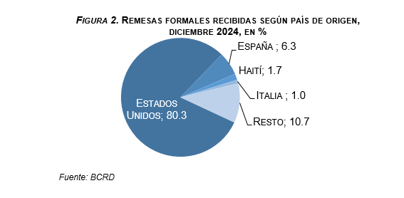 El BCRD explica que el desempeño económico de los Estados Unidos fue un factor determinante en el comportamiento de las remesas, ya que el 80.3% de los flujos formales de diciembre, equivalentes a US$710.5 millones, provinieron de ese país.