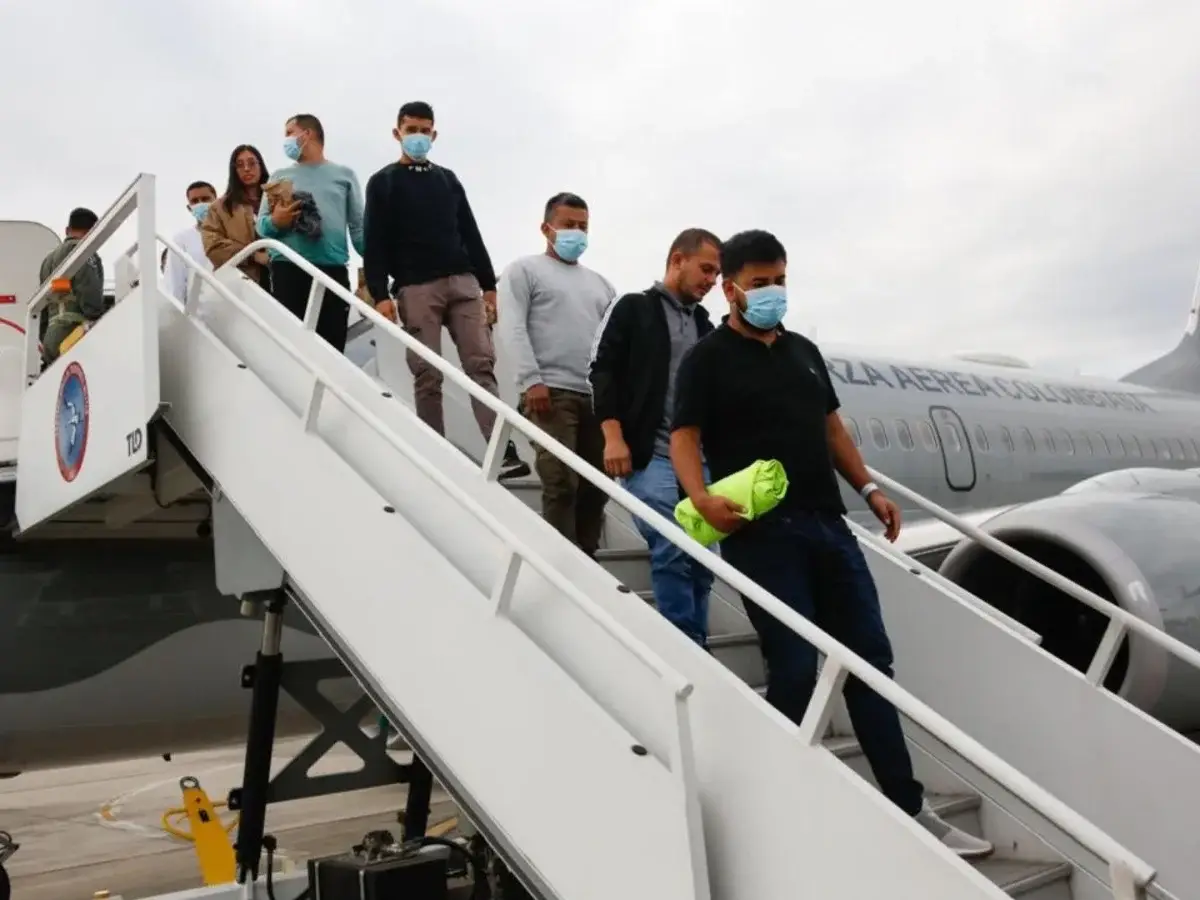 “Son colombianos, son libres y dignos y están en su patria donde se les quiere. El migrante no es un delincuente es un ser humano que quiere trabajar y progresar, vivir la vida”, expresó el presidente colombiano, Gustavo Petro, en un mensaje publicado en la red social X en el que compartió fotos de los ciudadanos bajándose del avión.