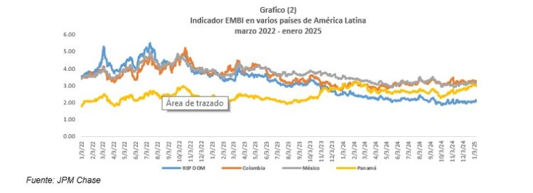 No obstante, este aumento en los rendimientos de los bonos soberanos de economías avanzadas y emergentes, el riesgo país de RD, medido por el EMBI, se mantiene en niveles bajos, incluso más favorables que el de otros países con grado de inversión, lo que refleja la perspectiva positiva sobre las finanzas públicas dominicanas.