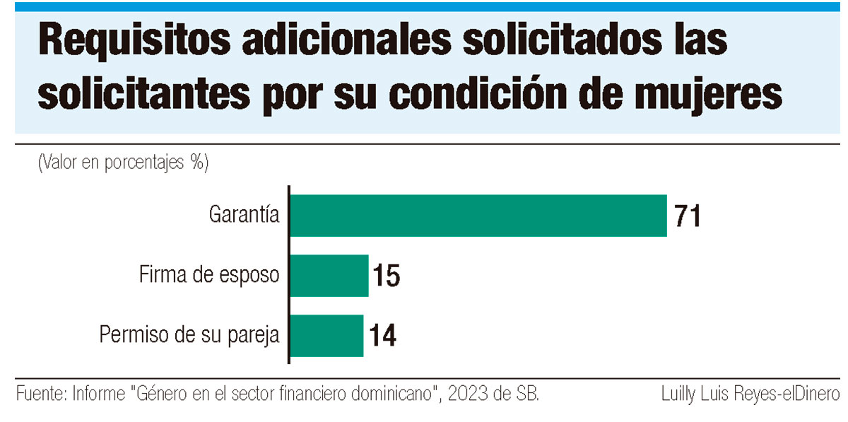 El último informe de la SB titulado “Género en el sector bancario” indica que los requisitos para acceder al crédito están frecuentemente vinculados al rol tradicional femenino como esposa o pareja. En 2023, “el 71% requirió un garante, un 15% firma del esposo y un 14% permiso de su pareja”.