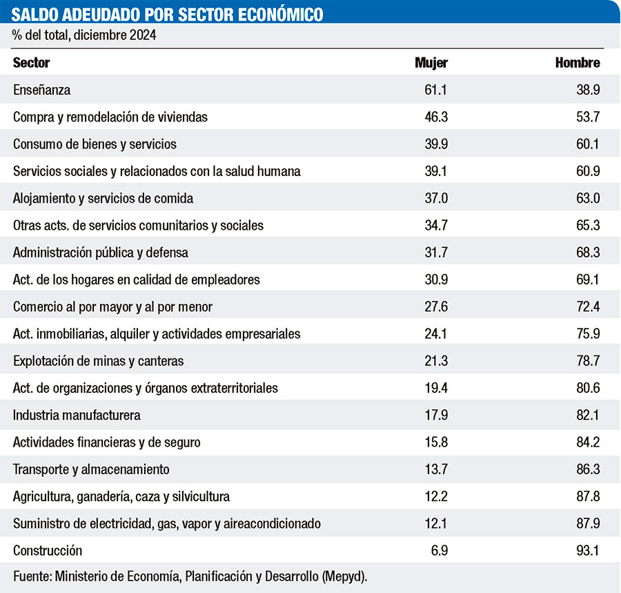 Un informe del Ministerio de Economía, Planificación y Desarrollo (Mepyd) revela que, a diciembre de 2024, las mujeres acreedoras pagaban una tasa promedio del 20.66%, superior al 20.43% que pagan los hombres, a pesar de tener mejores indicadores de morosidad.