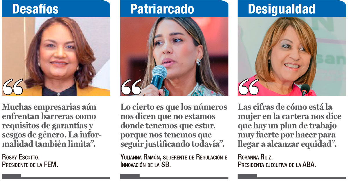 Las mujeres han logrado avances significativos en el sector financiero, no sólo como clientes, sino también en la ocupación de puestos directivos. Sin embargo, Rossy Escotto Minaya, presidenta de la Federación de Mujeres Empresarias Dominico-Internacional (FEM), indica que a pesar de los programas de financiamiento del Estado y las entidades de intermediación financiera (EIF) para mujeres empresarias, muchas aún enfrentan barreras como “requisitos de garantías” y “sesgos de género”.
