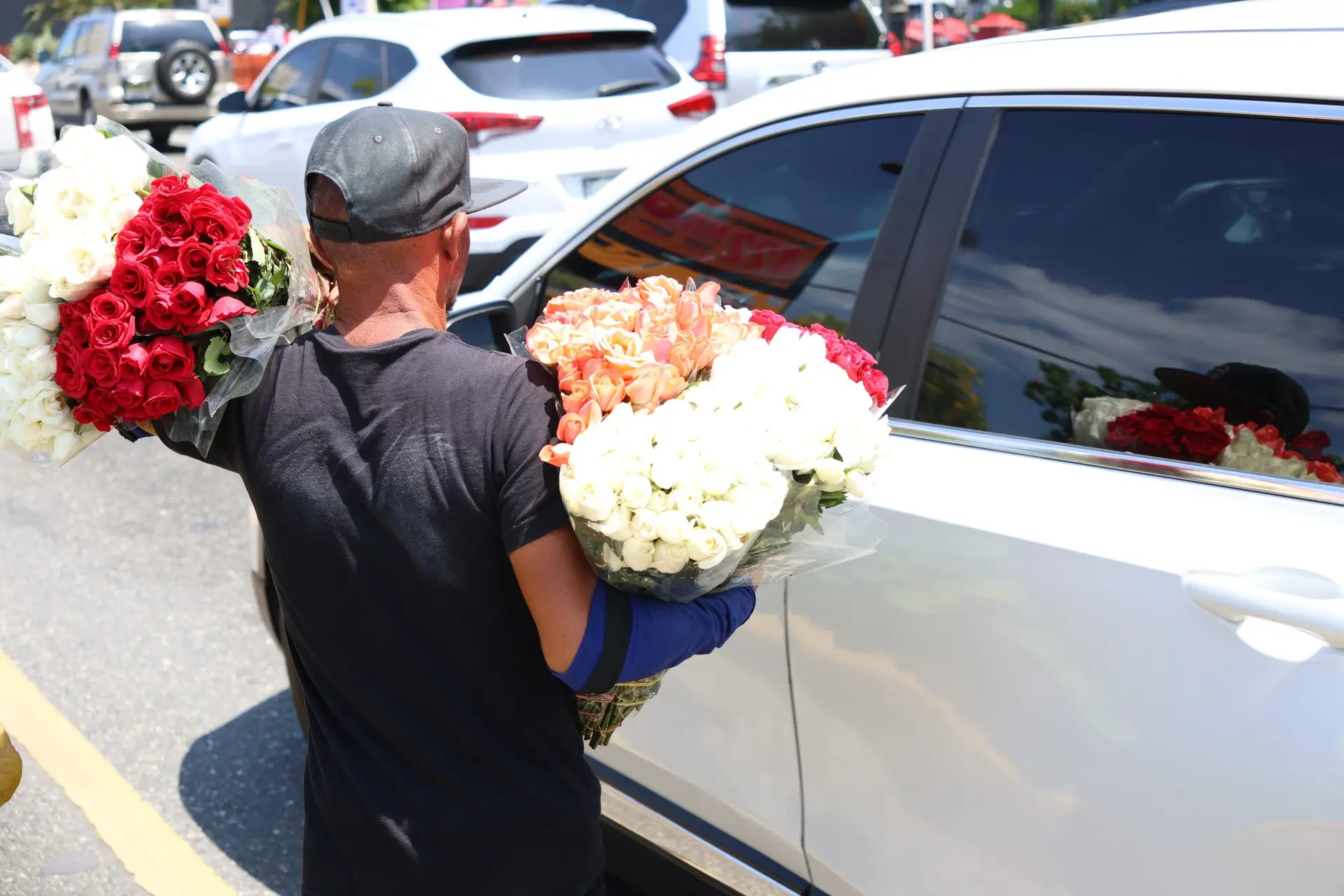 En la avenida Abraham Lincoln con Gustavo Mejía Ricart, está Luisito, un joven de 29 años que vende flores. “Las rosas se venden a RD$150 y los ramitos pequeños en RD$100”, cuenta. Dice que las mañanas y finales de tarde son sus mejores momentos. “Cuando hay tapón y hace calor, vendo más. La gente está más sensible”, asegura. Luisito gana entre RD$500 y RD$900 al día, pero su mercancía es delicada: si no vende, pierde. “Las flores no aguantan mucho. Hay que salir sí o sí”. Aclaro.
