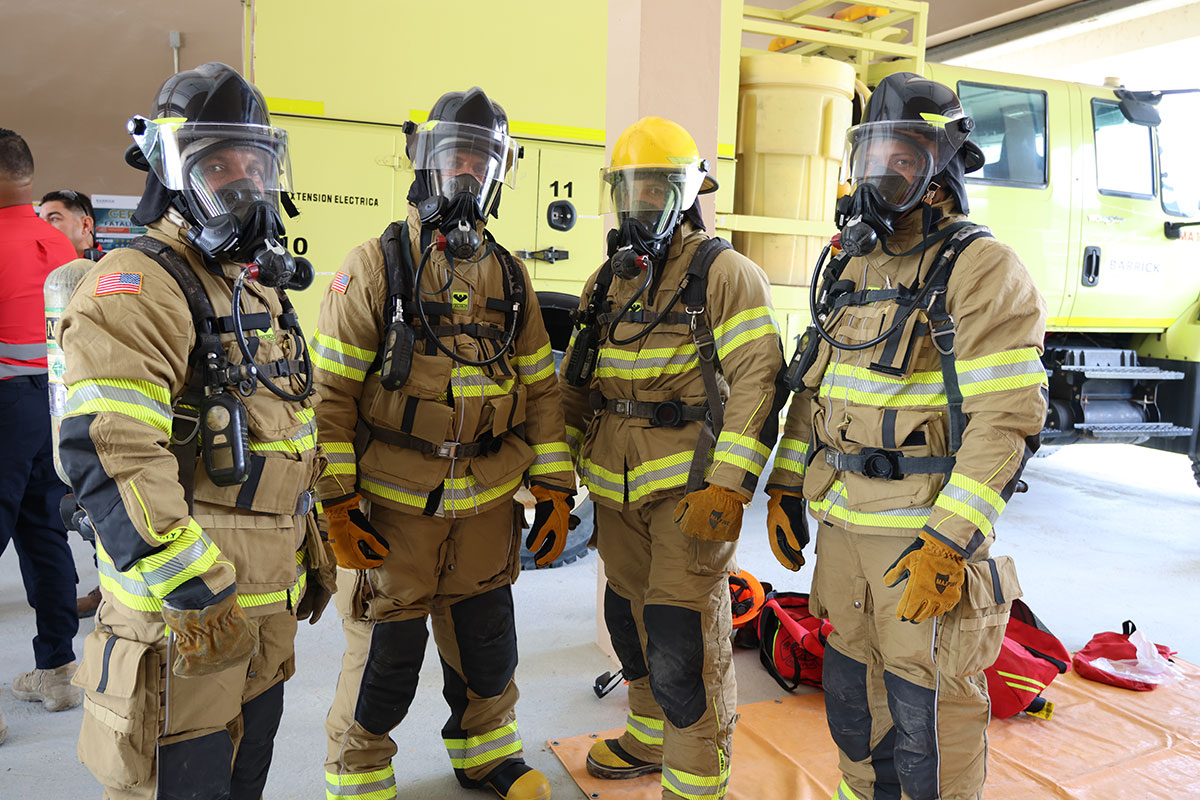La brigada de emergencia de Barrick Pueblo Viejo está compuesta por distintas áreas operativas de la mina. Bajo la dirección del capitán del turno A, Ángel Jiménez, los brigadistas realizan entrenamientos prácticos en manejo de fuego tipo B, como parte de su formación continua.