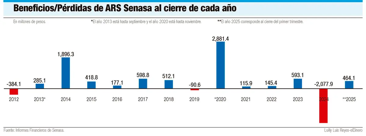 Se trata de una situación a considerar, no solo por el elevado nivel de pérdidas en un año, sino, además, porque solo en 2012 y en 2019 Senasa cerró con números rojos, y fueron cifras mucho menores (RD$384.1 millones y RD$90.6 millones, respectivamente), según indican los informes financieros de esa institución.
