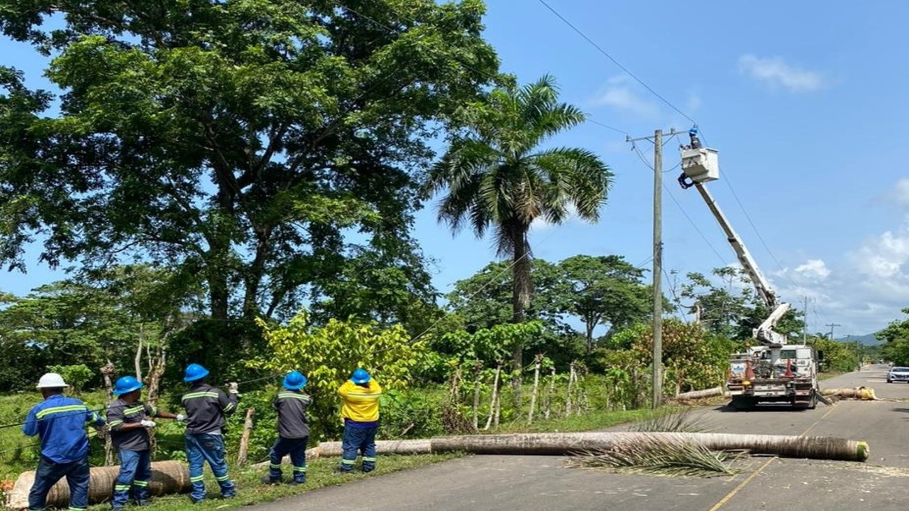 Durante los disturbios registrados la noche del sábado, según Edeeste, fueron derribados varios árboles que afectaron postes eléctricos y varios tramos de líneas de media tensión, dejando sin energía a sectores de la comunidad.