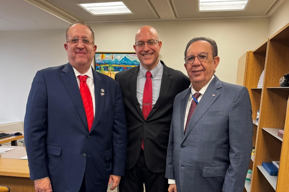El gobernador del Banco Central de la República Dominicana, Héctor Valdez Albizu, y el ministro de Hacienda y Economía (MHE), Magín Díaz, sostuvieron un encuentro bilateral con André Roncaglia, director ejecutivo del Fondo Monetario Internacional (FMI) por Brasil y presidente de la constituyente de países, a la cual pertenece la República Dominicana, en el marco del inicio de las Reuniones Anuales del FMI y del Banco Mundial de 2025.
