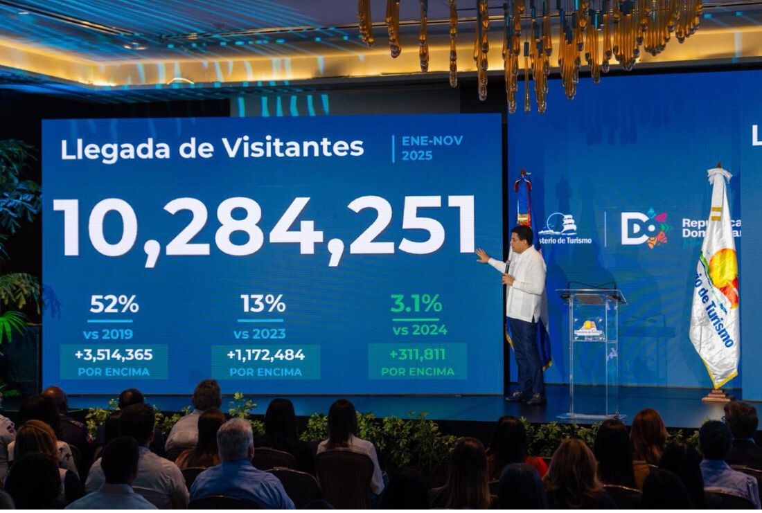 El funcionario informó que solo en el mes de noviembre el país recibió un total de 1,000,484 visitantes, lo que refleja crecimiento un crecimiento de un 75% respecto al 2019, 16% en comparación con el 2023 y 13.5% frente al 2024.