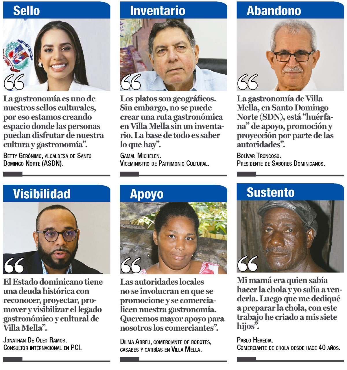 Mientras tanto, Sabores Dominicanos entiende que la gastronomía de Villa Mella está huérfana de apoyo, promoción y proyección por parte de la Alcaldía de Santo Domingo Norte (ASDN) y los ministerios de Turismo y de Cultura.