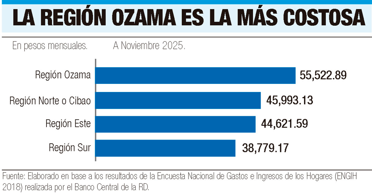 La canasta básica familiar en República Dominicana representa más que un conjunto de productos, servicios y alimentos de primera necesidad, es un indicador del bienestar económico de las familias. Es, además, un indicador de la capacidad de consumo de la población. De acuerdo con datos del Banco Central de República Dominicana (BCRD), la región Ozama se mantiene como la más costosa del país en este 2025.