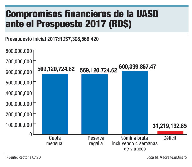 Ese compromiso que asumió su Rectoría incrementa a más de RD$42 millones el déficit de la universidad estatal. Eso significa que el sobregiro de la academia sobrepasará los RD$524 millones al terminar este año.