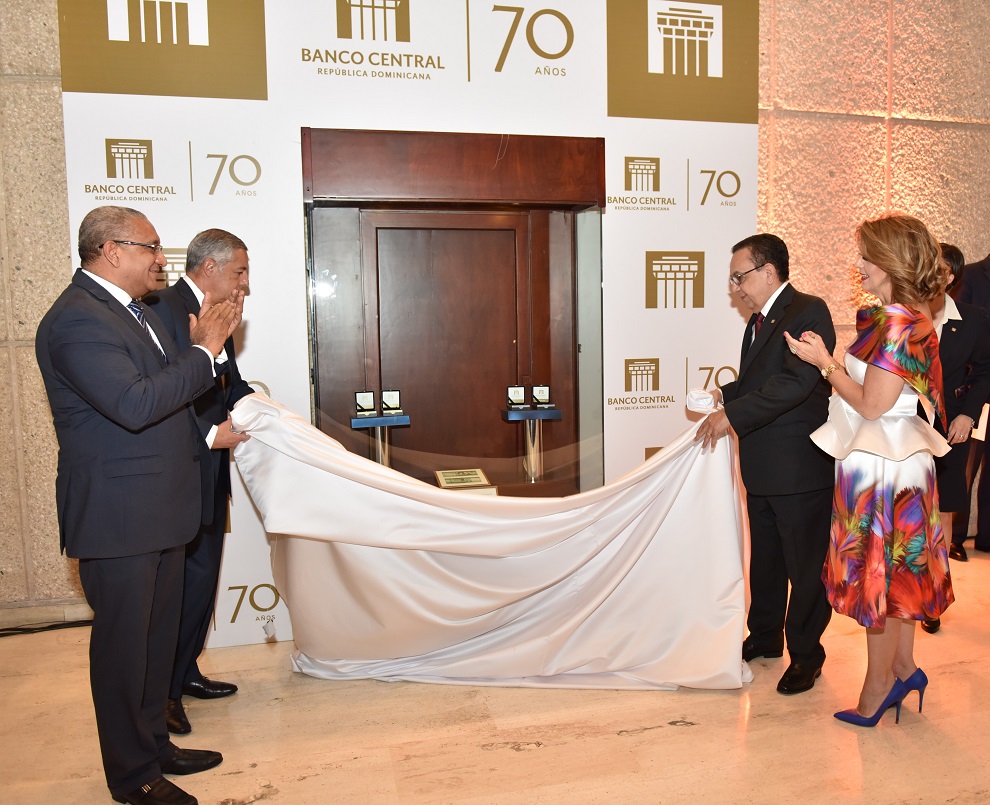 También con motivo de su 70 aniversario, el BCRD acuñó una moneda conmemorativa de 70 pesos dominicanos en versiones de oro y plata. La moneda tiene en su anverso el isotipo de la nueva identidad visual del BCRD, consistente en una representación de la edificación de catorce pisos que alberga las oficinas ejecutivas y administrativas de la institución, considerada como una de las joyas de la arquitectura moderna dominicana, obra del arquitecto dominicano Rafael Calventi, junto a la leyenda ‘LXX Aniversario Banco Central’ y los años ‘1947-2017’.
