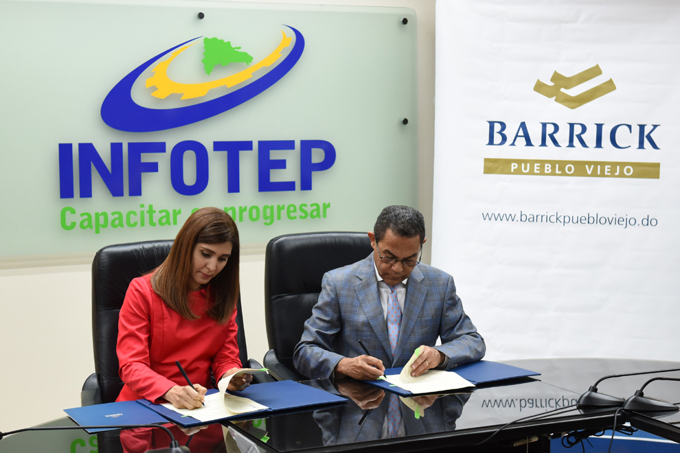 “Agradecemos al Infotep por continuar siendo nuestro aliado estratégico para cumplir con el compromiso de dejar un legado positivo, que contribuya con la mejoría de la calidad de vida de las personas en nuestra zona de influencia y con nuestras operaciones”, precisó la presidenta de Barrick Pueblo Viejo.