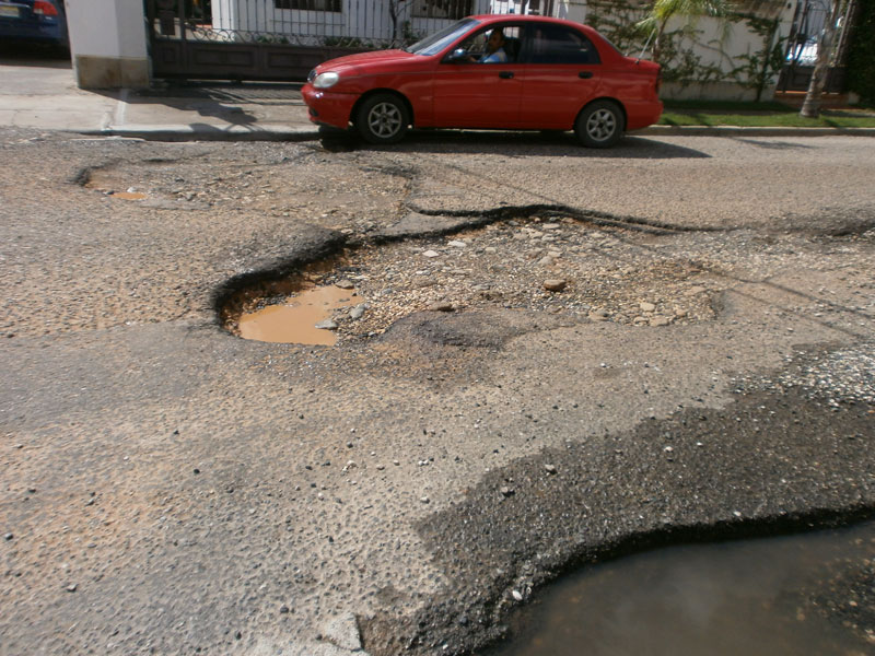 El mal estado de las calles está afectando las actividades comerciales en la calle Desiderio Arias casi esquina Winston Churchill.