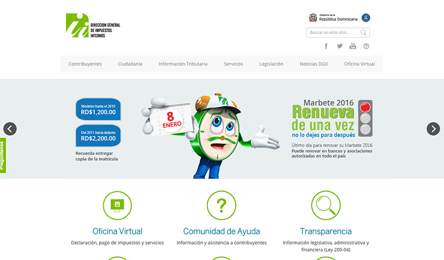 La Dirección General de Impuestos Internos (DGII) alcanzó un récord en renovación de marbete vía internet, que cerró ayer lunes ...