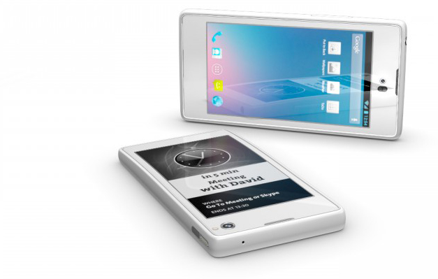 Un celular inteligente con dos pantallas, una de ellas de tinta electrónica (como la de los e-books), es la propuesta...